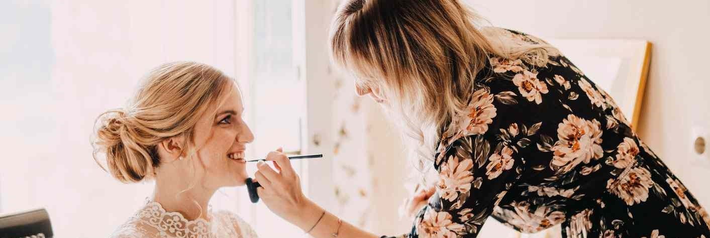 Die Stylistin kümmert sich um Haare und Make-up. Manche Bräute schicken ihr Fotos, wie sie normal aussehen und ein Foto einer Braut, die ein Styling hat, das ihr gefällt. Andere haben am Hochzeitstag ein paar Fotos auf dem Handy und wieder andere Bräute besprechen das Styling einfach am Hochzeitstag mit der Stylistin.